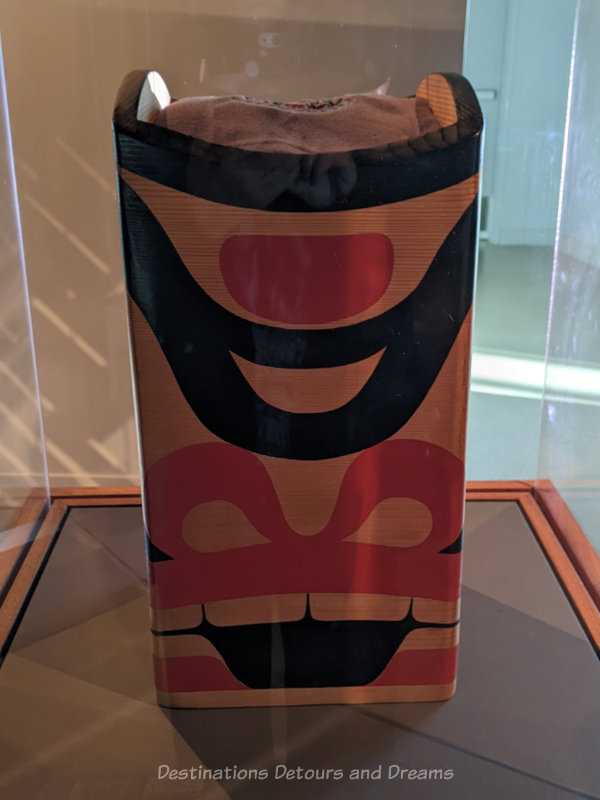 The Grizzly Bear Bentwood Box, made out of old growth red cedar, a sacred traditional medicine, was carved by Carey Newman for the purpose of carrying the stewardship agreement. It is on display in the exhibit.