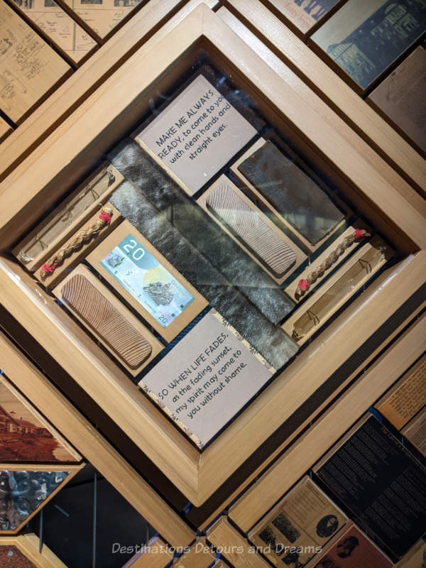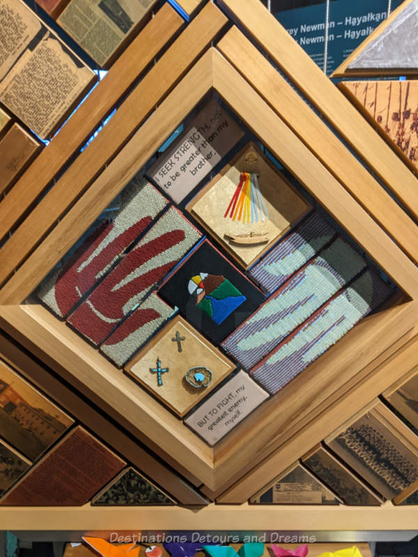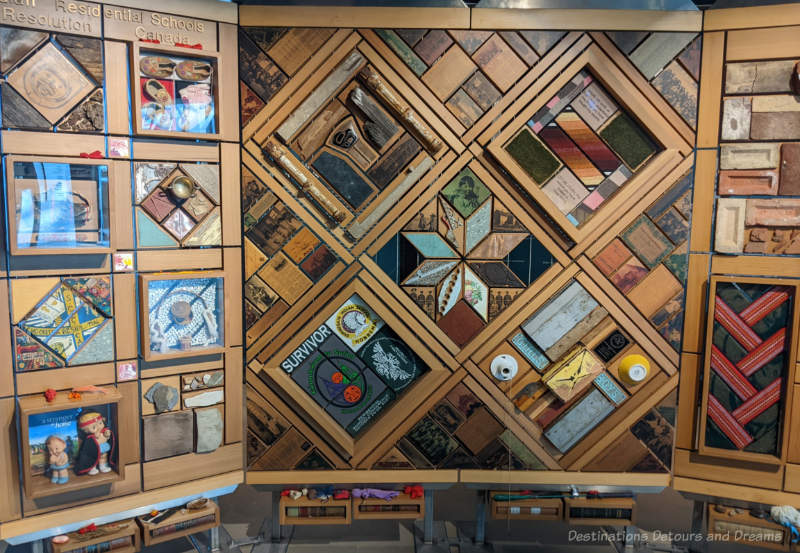 On exhibit at the Canadian Museum for Human Rights in Winnipeg, Manitoba, Canada, the Witness Blanket is impressive when one views it in its entirety from a bit of a distance, but it has an even more powerful effect when you view its pieces up close.